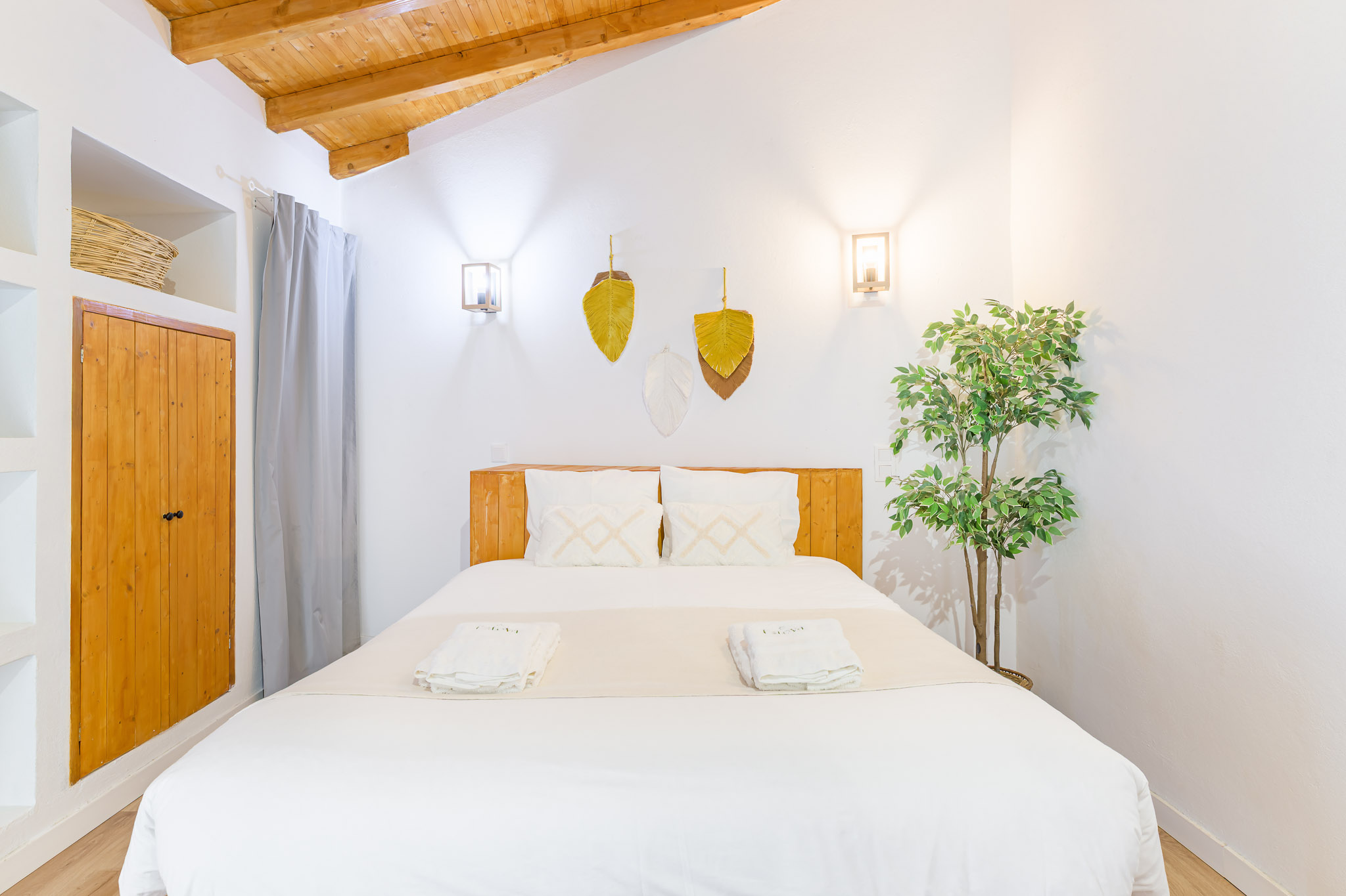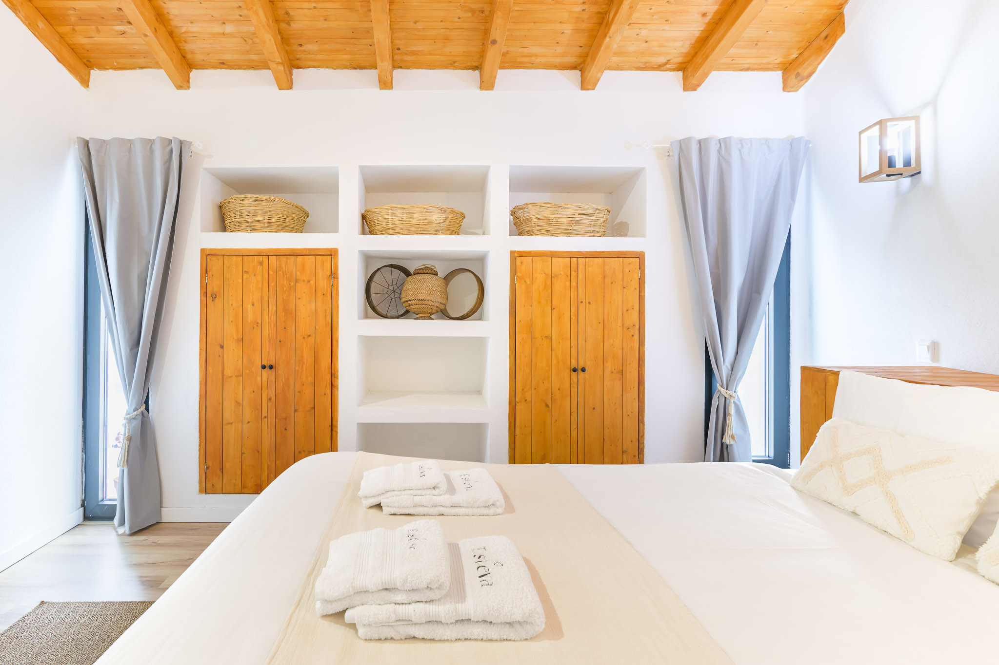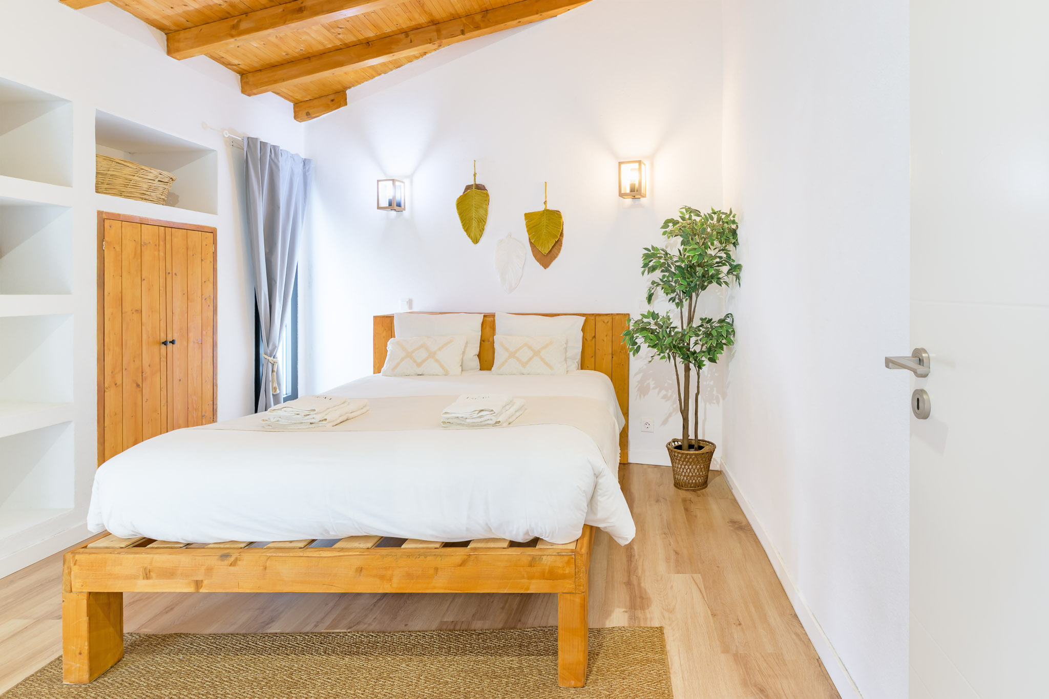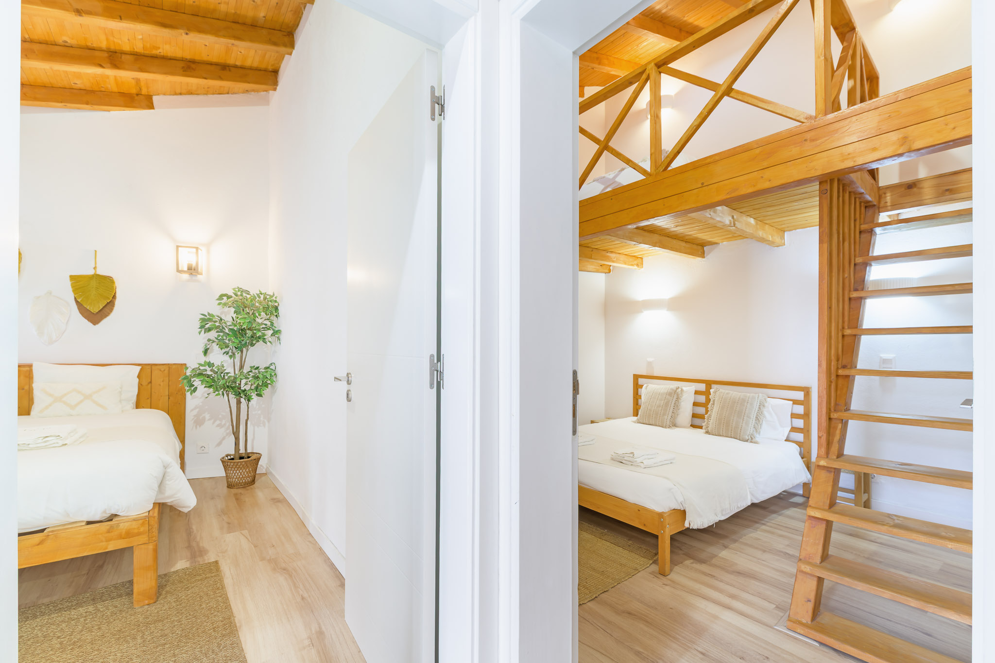 Dois quartos, cada um equipado com cama de casal e roupeiro.