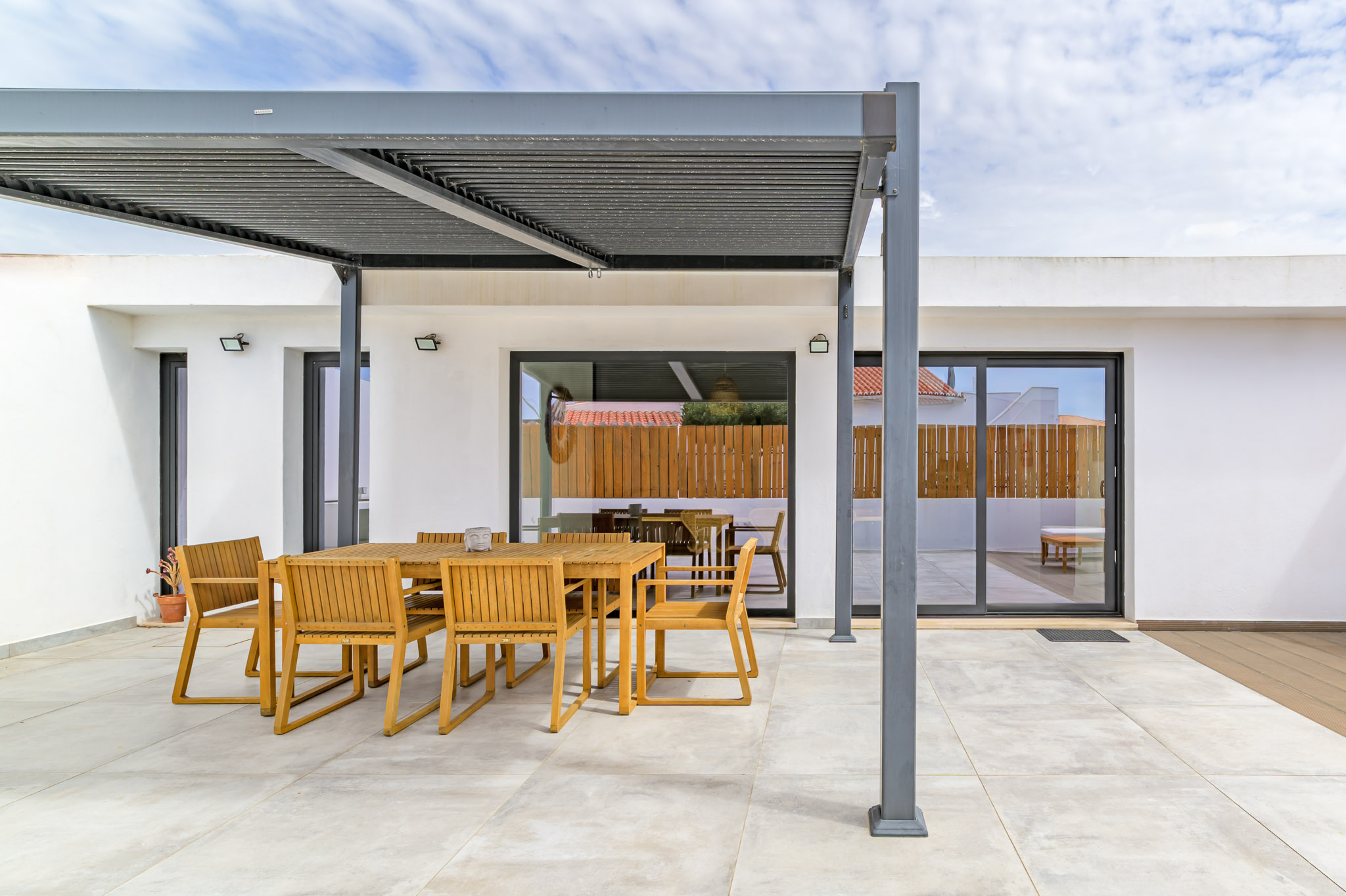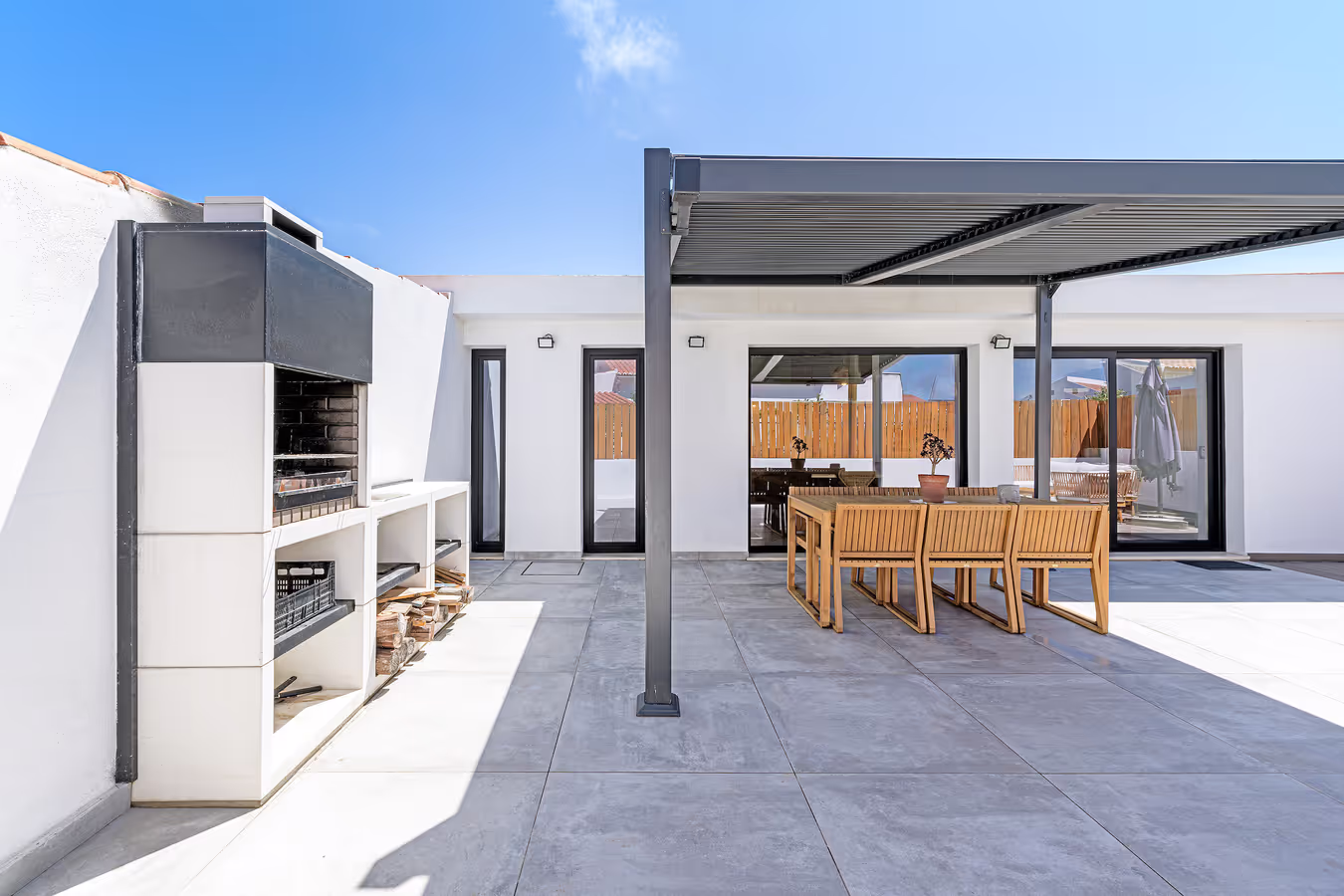Um espaço exterior privado com churrasqueira, perfeito para desfrutar de refeições ao ar livre.