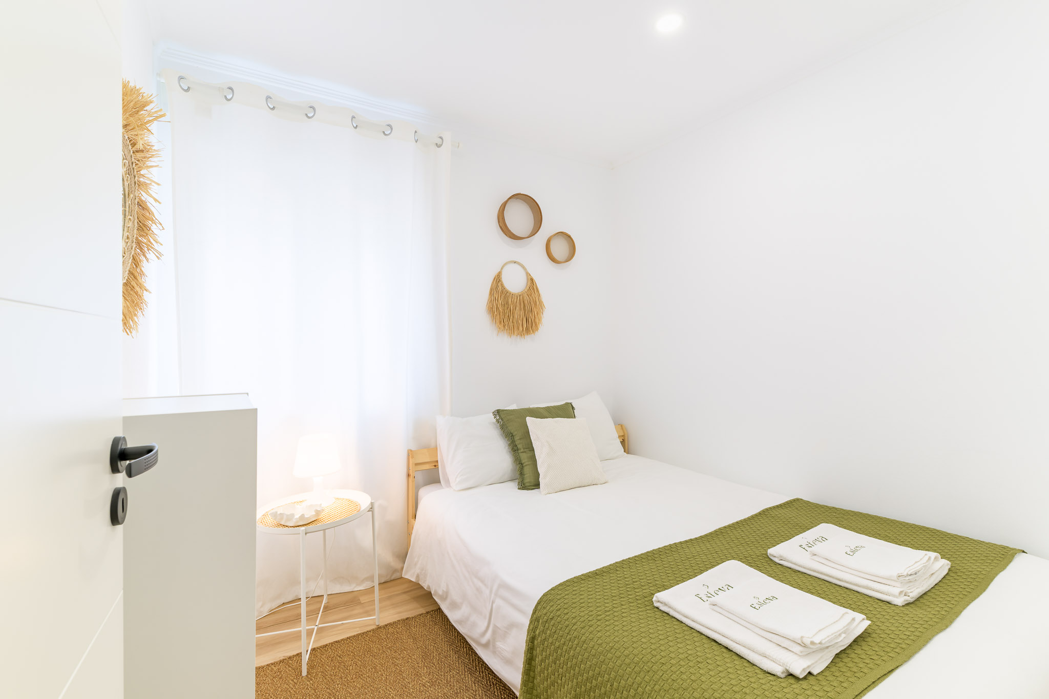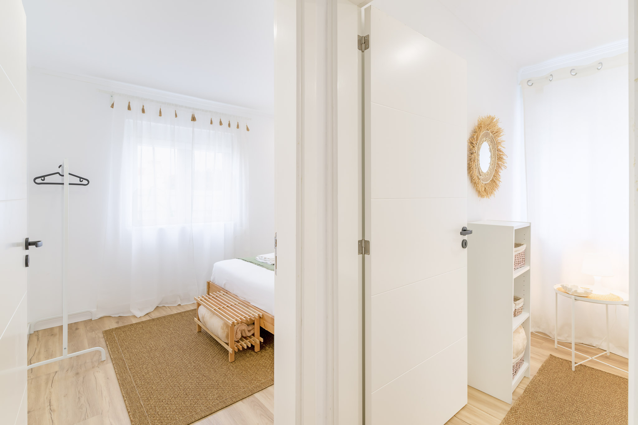 Dois quartos, cada um equipado com cama de casal e roupeiro.